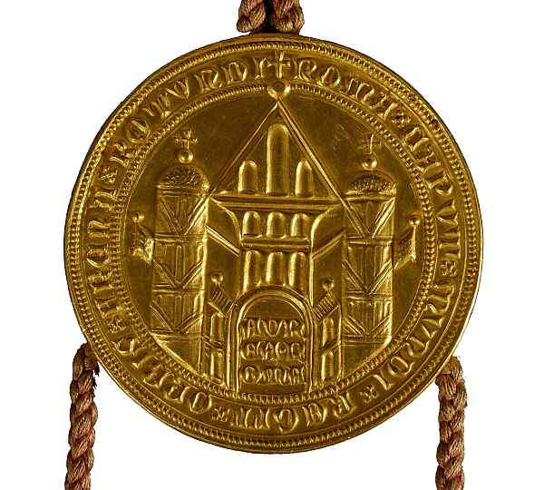 Eine Besonderheit waren Siegel aus Gold, ein faktisch nur Königen vorbehaltener, besonders edler Siegelstoff. Diese sogenannten Goldbullen waren recht selten und wurden nur bei herausragenden Anlässen verwendet.