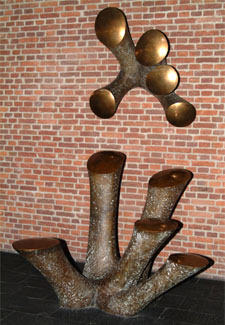 Zu guter Letzt wollen wir Ihnen die Bronzeplastik nicht vorenthalten, die sich bei uns im Foyer befindet. Sie wurde von der Stuttgarter Bildhauerin Eva Zippel im Auftrag des Landes Baden-Württemberg geschaffen. Mit dem Titel „Zueinander“ ist sie Sinnbild einer organisch wachsenden Gesellschaft und damit gleichsam des Archivs, das mit seinen Dokumenten die Gesellschaft widerspiegelt und ihr als Gedächtnis dient.